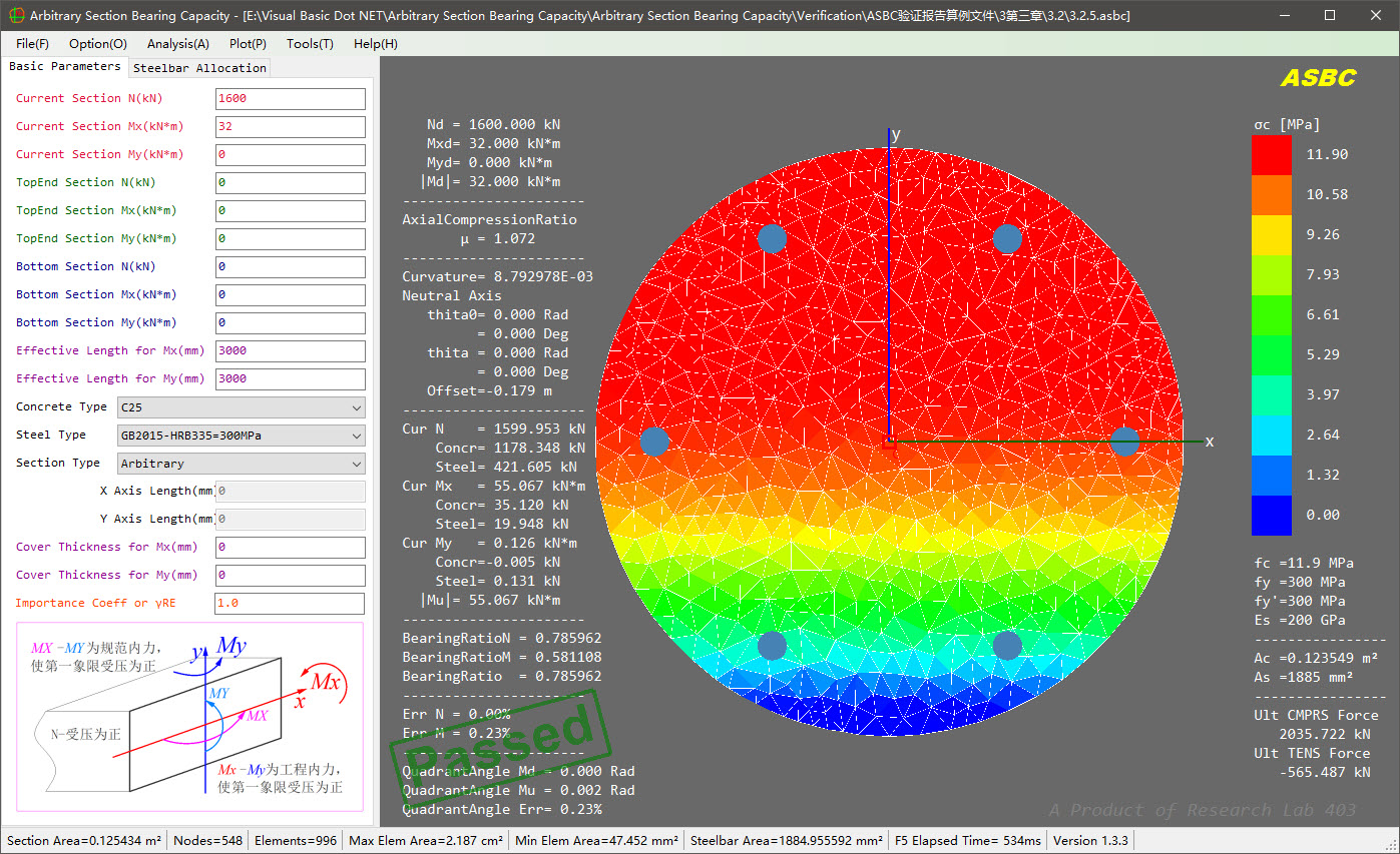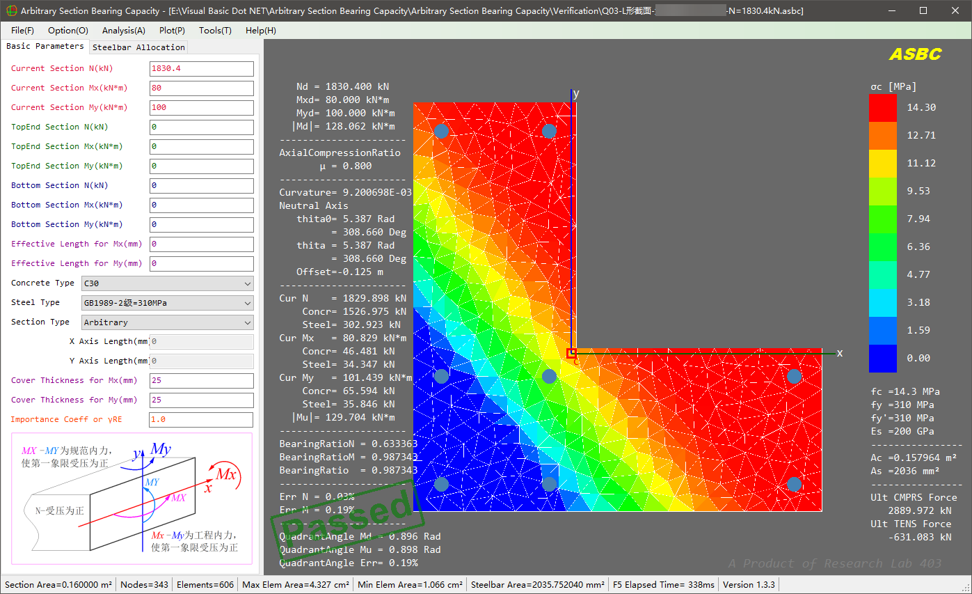 ASBC用于对任意形状的配筋截面开展承载能力验算。截面的形状和钢筋分布可由AutoCAD导入,ASBC可开展轴心受压、轴心受拉、纯弯、偏压和偏拉验算。其中,偏压和偏拉可考虑单偏和双偏情况。